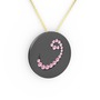 Pembe kuvars 925 ayar siyah rodyum kaplama gümüş kolye (40 cm altın rolo zincir)