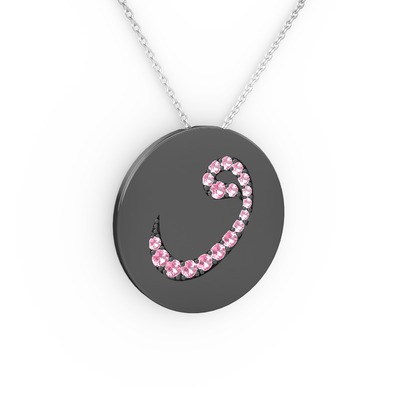 Pembe kuvars 925 ayar siyah rodyum kaplama gümüş kolye (40 cm beyaz altın rolo zincir)