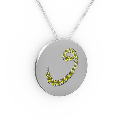 Peridot 8 ayar beyaz altın kolye (40 cm beyaz altın rolo zincir)