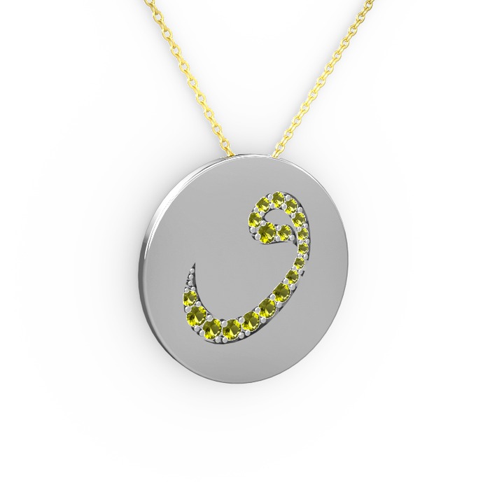 Peridot 8 ayar beyaz altın kolye (40 cm gümüş rolo zincir)