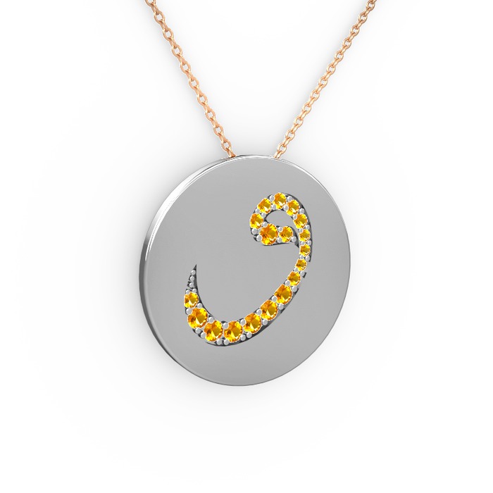 Sitrin 8 ayar beyaz altın kolye (40 cm rose altın rolo zincir)
