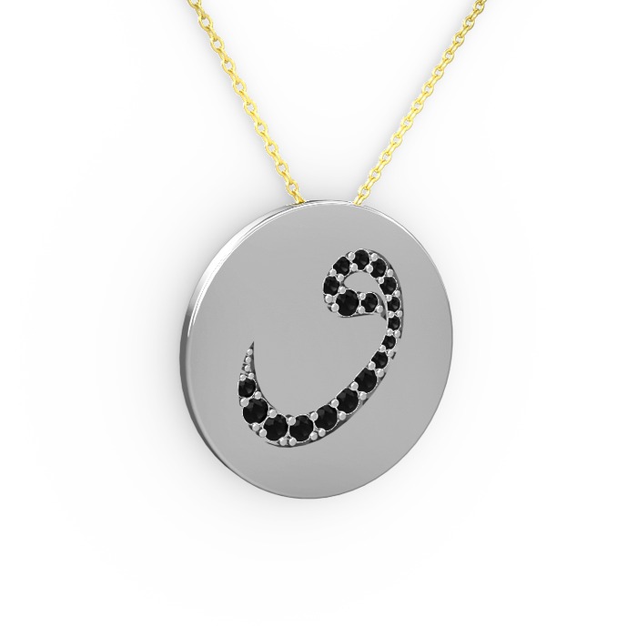 Siyah zirkon 14 ayar beyaz altın kolye (40 cm altın rolo zincir)