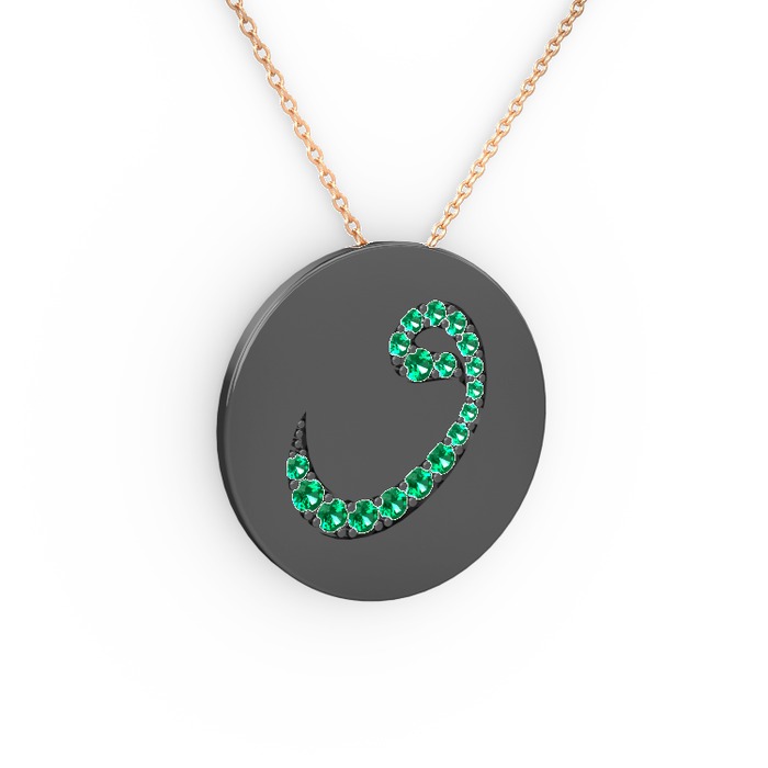 Yeşil kuvars 925 ayar siyah rodyum kaplama gümüş kolye (40 cm gümüş rolo zincir)