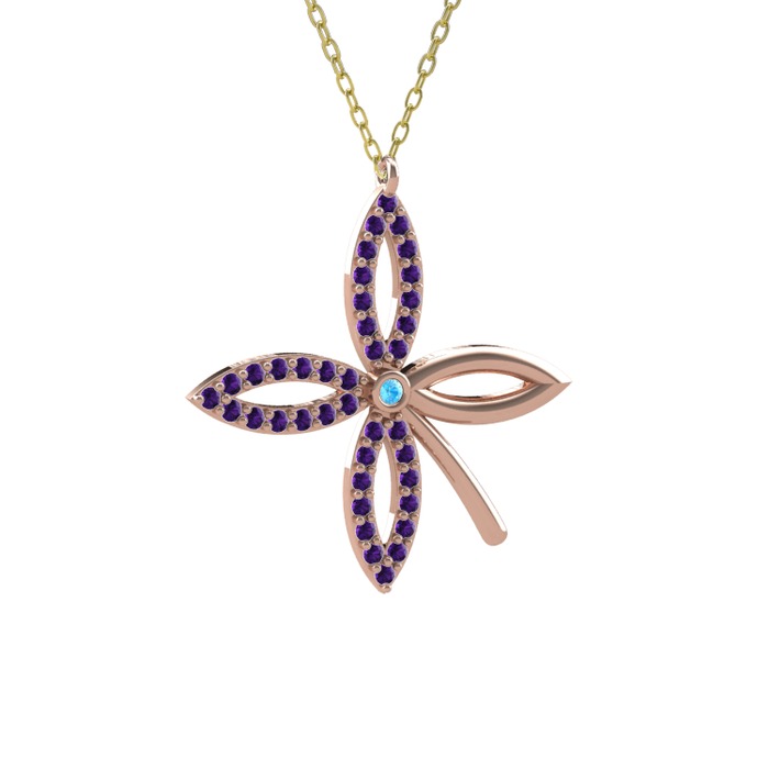 Akuamarin ve ametist 925 ayar rose altın kaplama gümüş kolye (40 cm gümüş rolo zincir)