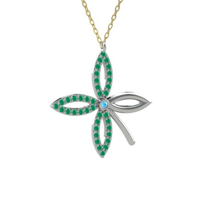 Akuamarin ve kök zümrüt 8 ayar beyaz altın kolye (40 cm altın rolo zincir)