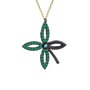 Akuamarin ve kök zümrüt 925 ayar siyah rodyum kaplama gümüş kolye (40 cm altın rolo zincir)