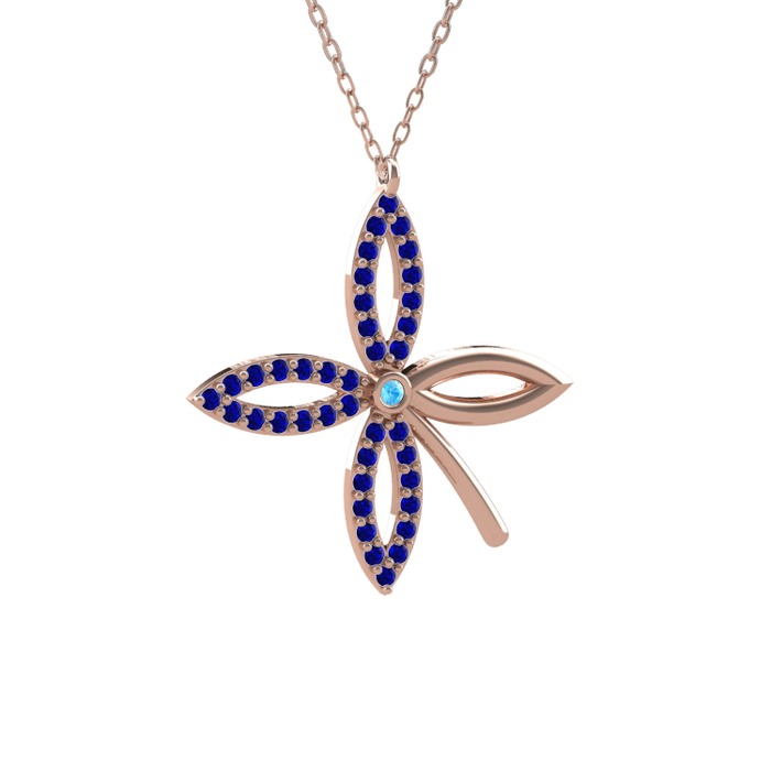 Akuamarin ve lab safir 925 ayar rose altın kaplama gümüş kolye (40 cm gümüş rolo zincir)