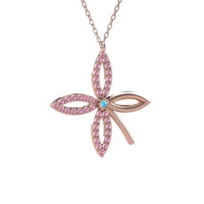 Akuamarin ve pembe kuvars 14 ayar rose altın kolye (40 cm rose altın rolo zincir)