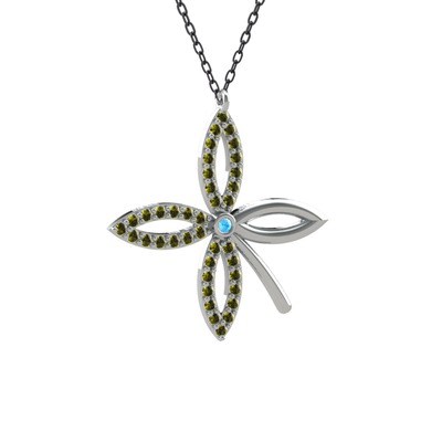 Akuamarin ve peridot 18 ayar beyaz altın kolye (40 cm gümüş rolo zincir)