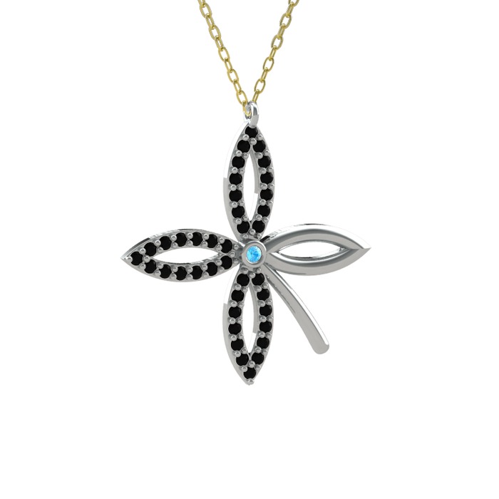 Akuamarin ve siyah zirkon 18 ayar beyaz altın kolye (40 cm gümüş rolo zincir)