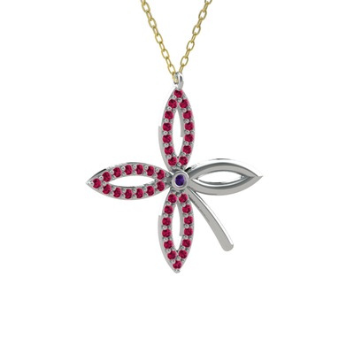 Ametist ve rodolit garnet 925 ayar gümüş kolye (40 cm altın rolo zincir)
