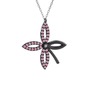 Beyaz zirkon ve pembe kuvars 925 ayar siyah rodyum kaplama gümüş kolye (40 cm beyaz altın rolo zincir)