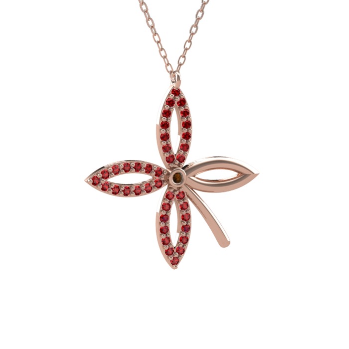 Dumanlı kuvars ve garnet 925 ayar rose altın kaplama gümüş kolye (40 cm rose altın rolo zincir)