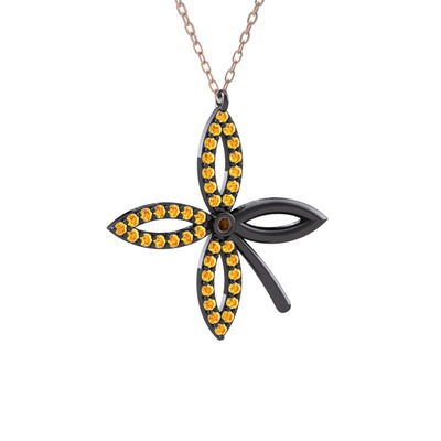 Dumanlı kuvars ve sitrin 925 ayar siyah rodyum kaplama gümüş kolye (40 cm gümüş rolo zincir)