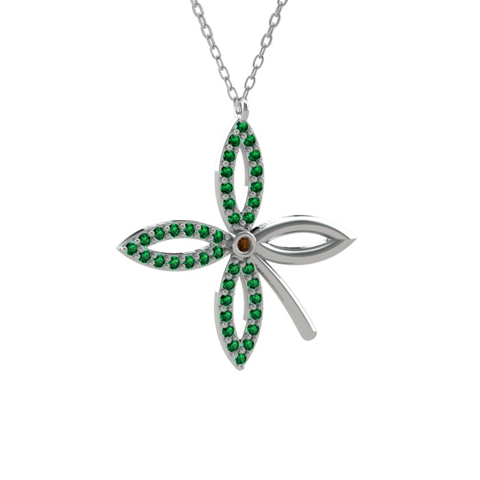 Dumanlı kuvars ve yeşil kuvars 14 ayar beyaz altın kolye (40 cm beyaz altın rolo zincir)