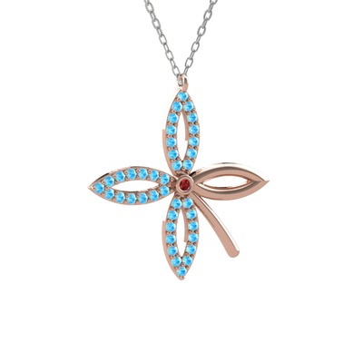 Garnet ve akuamarin 925 ayar rose altın kaplama gümüş kolye (40 cm beyaz altın rolo zincir)
