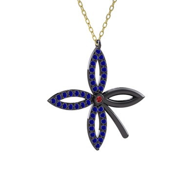 Garnet ve lab safir 925 ayar siyah rodyum kaplama gümüş kolye (40 cm altın rolo zincir)