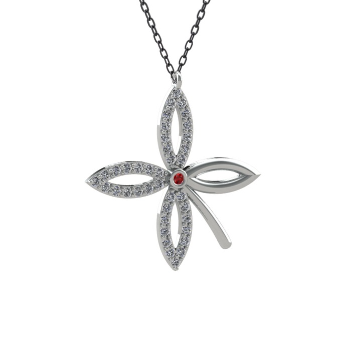 Garnet ve pırlanta 14 ayar beyaz altın kolye (0.429 karat, 40 cm gümüş rolo zincir)