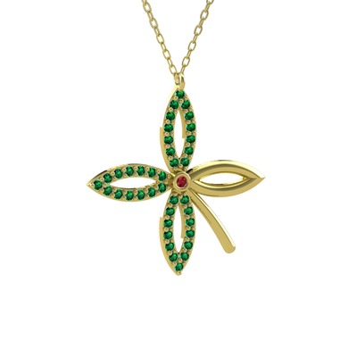 Garnet ve yeşil kuvars 925 ayar altın kaplama gümüş kolye (40 cm altın rolo zincir)