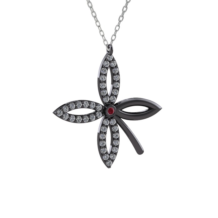 Kök yakut ve pırlanta 925 ayar siyah rodyum kaplama gümüş kolye (0.429 karat, 40 cm beyaz altın rolo zincir)