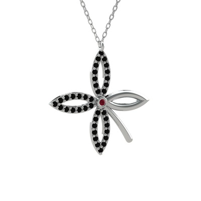 Kök yakut ve siyah zirkon 925 ayar gümüş kolye (40 cm gümüş rolo zincir)