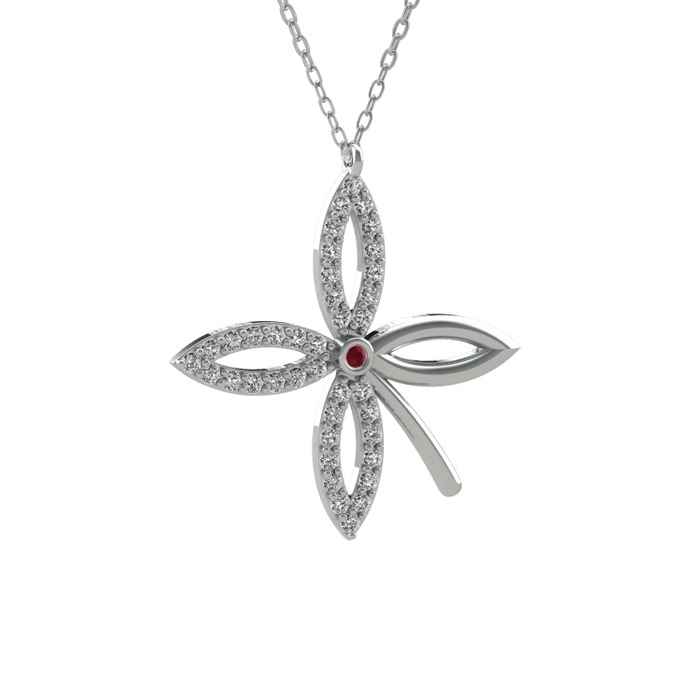 Kök yakut ve swarovski 18 ayar beyaz altın kolye (40 cm beyaz altın rolo zincir)