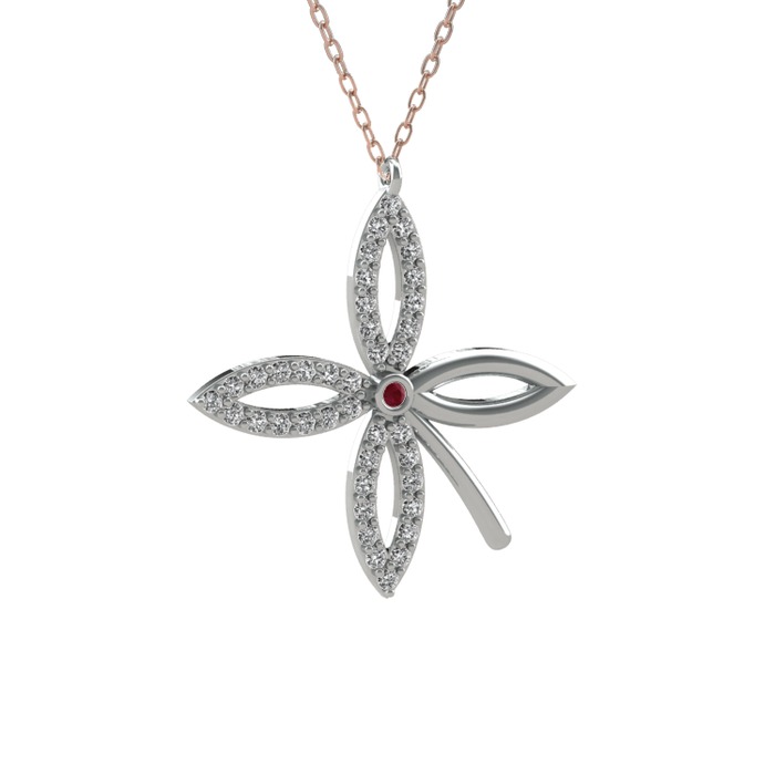 Kök yakut ve swarovski 925 ayar gümüş kolye (40 cm rose altın rolo zincir)