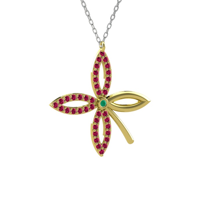 Kök zümrüt ve rodolit garnet 925 ayar altın kaplama gümüş kolye (40 cm gümüş rolo zincir)