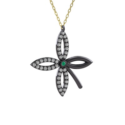 Kök zümrüt ve swarovski 925 ayar siyah rodyum kaplama gümüş kolye (40 cm altın rolo zincir)