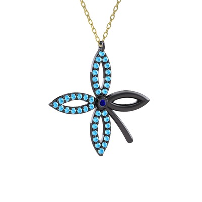 Lab safir ve akuamarin 925 ayar siyah rodyum kaplama gümüş kolye (40 cm altın rolo zincir)