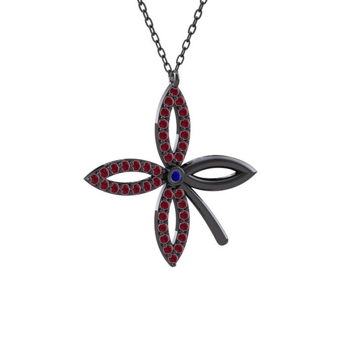 Lab safir ve kök yakut 925 ayar siyah rodyum kaplama gümüş kolye (40 cm gümüş rolo zincir)