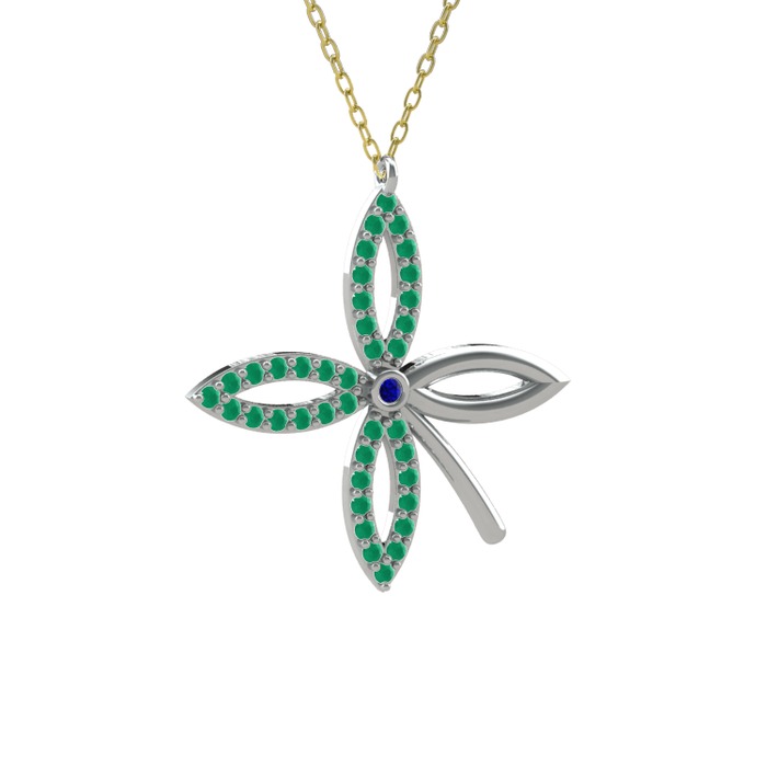 Lab safir ve kök zümrüt 8 ayar beyaz altın kolye (40 cm altın rolo zincir)