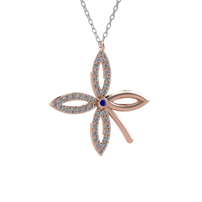 Lab safir ve pırlanta 14 ayar rose altın kolye (0.429 karat, 40 cm beyaz altın rolo zincir)