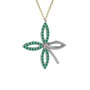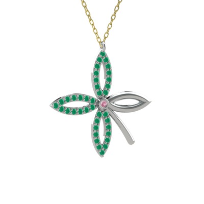 Pembe kuvars ve kök zümrüt 14 ayar beyaz altın kolye (40 cm gümüş rolo zincir)