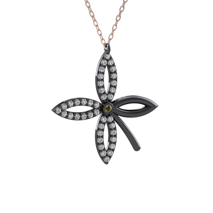 Peridot ve swarovski 925 ayar siyah rodyum kaplama gümüş kolye (40 cm rose altın rolo zincir)