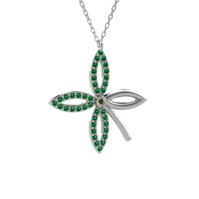 Peridot ve yeşil kuvars 18 ayar beyaz altın kolye (40 cm beyaz altın rolo zincir)