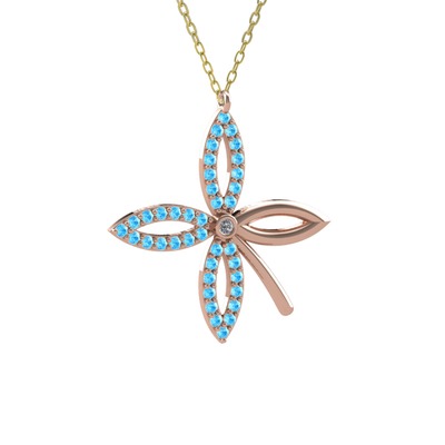 Pırlanta ve akuamarin 18 ayar rose altın kolye (0.015 karat, 40 cm altın rolo zincir)