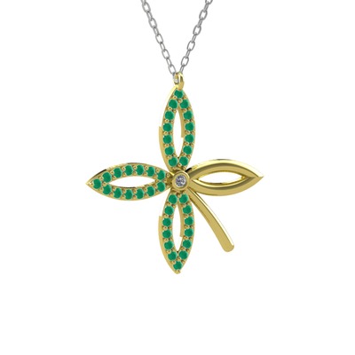Pırlanta ve kök zümrüt 8 ayar altın kolye (0.015 karat, 40 cm beyaz altın rolo zincir)