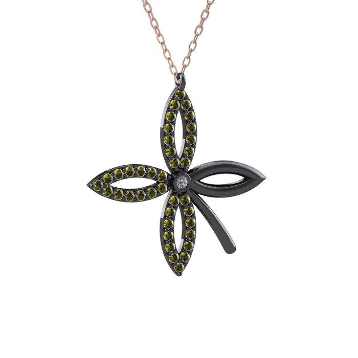 Pırlanta ve peridot 925 ayar siyah rodyum kaplama gümüş kolye (0.015 karat, 40 cm gümüş rolo zincir)