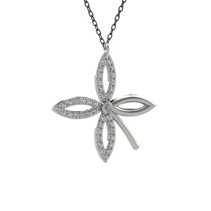 Pırlanta ve swarovski 8 ayar beyaz altın kolye (0.015 karat, 40 cm gümüş rolo zincir)