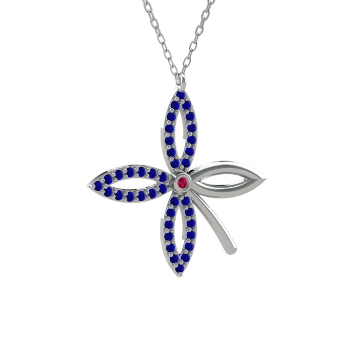 Rodolit garnet ve lab safir 18 ayar beyaz altın kolye (40 cm beyaz altın rolo zincir)