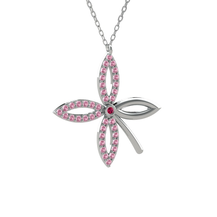 Rodolit garnet ve pembe kuvars 925 ayar gümüş kolye (40 cm gümüş rolo zincir)