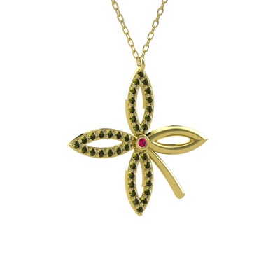 Rodolit garnet ve peridot 8 ayar altın kolye (40 cm altın rolo zincir)