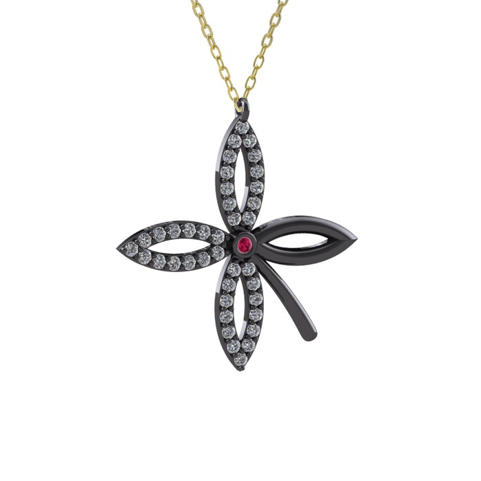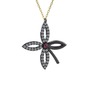 Rodolit garnet ve pırlanta 925 ayar siyah rodyum kaplama gümüş kolye (0.429 karat, 40 cm altın rolo zincir)