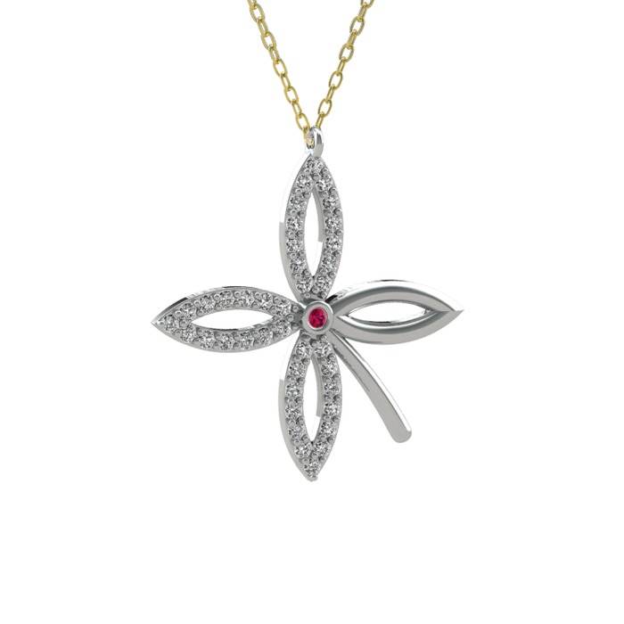 Rodolit garnet ve swarovski 14 ayar beyaz altın kolye (40 cm altın rolo zincir)