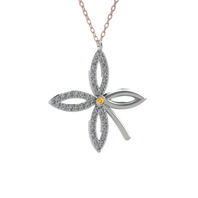Sitrin ve pırlanta 8 ayar beyaz altın kolye (0.429 karat, 40 cm gümüş rolo zincir)