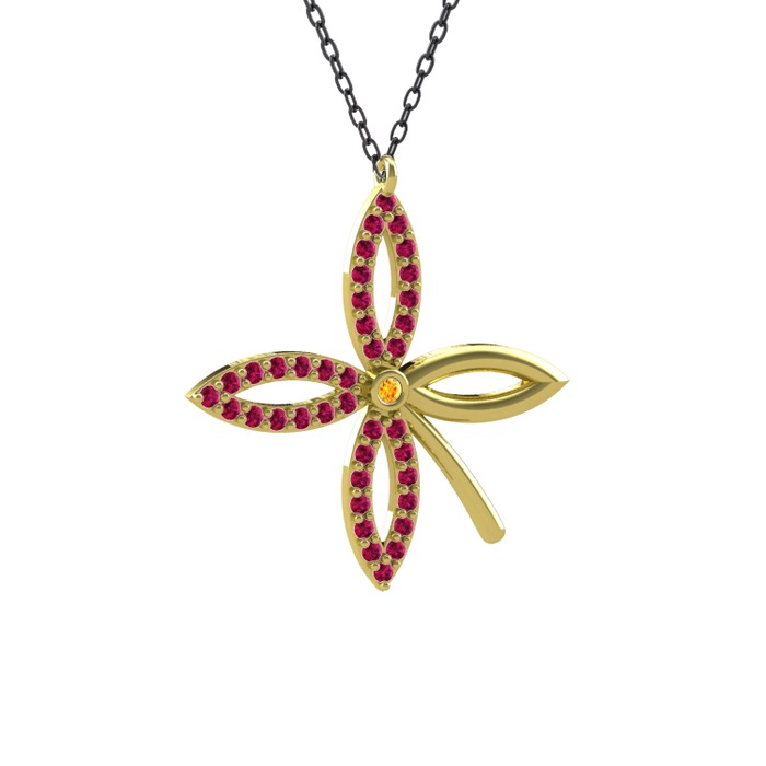Sitrin ve rodolit garnet 925 ayar altın kaplama gümüş kolye (40 cm gümüş rolo zincir)