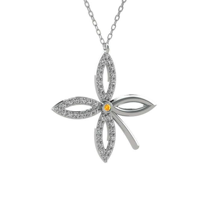 Sitrin ve swarovski 925 ayar gümüş kolye (40 cm gümüş rolo zincir)
