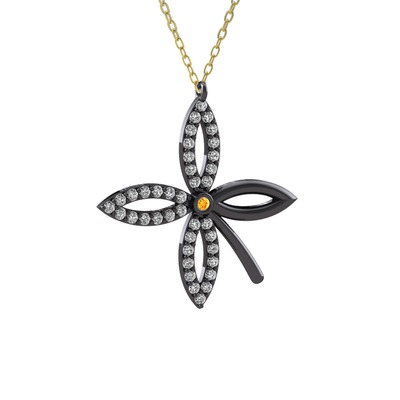 Sitrin ve swarovski 925 ayar siyah rodyum kaplama gümüş kolye (40 cm altın rolo zincir)