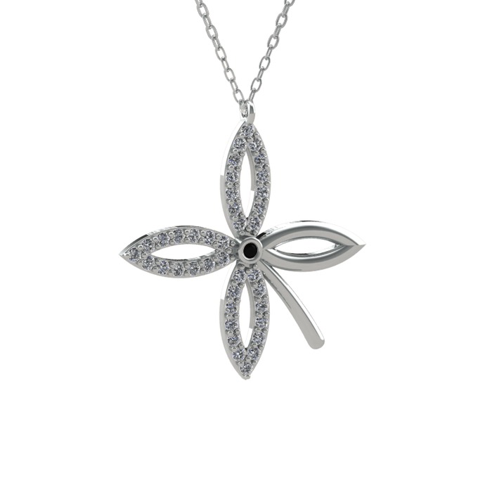 Siyah zirkon ve pırlanta 18 ayar beyaz altın kolye (0.429 karat, 40 cm beyaz altın rolo zincir)